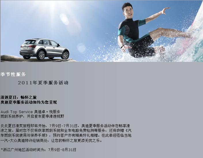 - 奥迪夏季服务活动为你呈现 2015-11-01 点击:2310